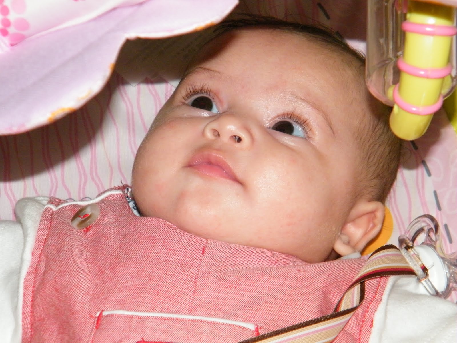 We have some new photos of Riley. Tomorrow she will be 3 months. We can't belive how big she's getting. Today she learned to sit and stand......literally she sits when you tell her to and stands when you tell her to. She is getting so smart, big and of course pretty. Some of these were taken at the zoo. It was her first time to pet a goat. She was facinated. She also enjoys the pool. She sits very comfortably in her float. Enjoy the pics...